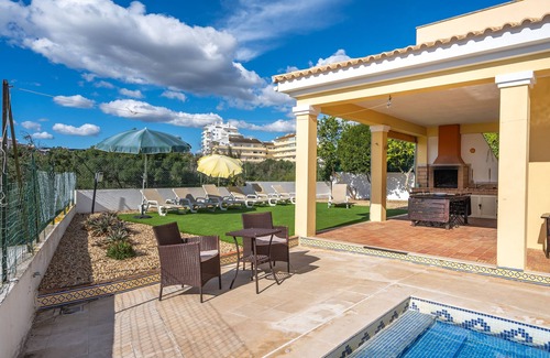 Cuenta con bonitas vistas al mar, la villa Alvor se encuentra en Alvor. La propiedad de 200 m² consta de una sala de estar con un sofá cama para 2 personas, una cocina bien equipada, 4 dormitorios y 4 baños, por lo que puede alojar a 10 personas. Los servicios adicionales incluyen Wi-Fi de alta velocidad (apto para videollamadas), televisión, aire acondicionado y lavadora. Este alquiler de vacaciones ofrece una piscina privada, jardín, terraza descubierta, terraza cubierta, balcón y barbacoa.