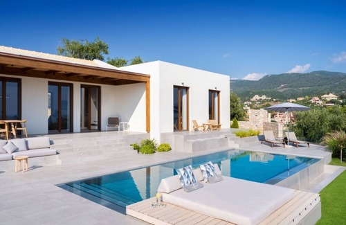 Villa Anthilia is a rare and exceptional find, offering first-class two-bedroom villas along a diverse and extraordinary stretch of coastline. Recently built to an incredibly high standard, this villa boasts understated style, mesmerizing views across the Ionian to Corfu and Paxos, a private pool terrace, and a beautifully maintained lawned garden. The single storey layout feels both luxurious and practical, making it perfect for couples or families traveling with toddlers outside of school holidays, yet still suitable for small families during peak season. The interior of the villa is designed to showcase the stunning vista at every turn, with a spacious open-plan living area that is well-appointed. Pale decor, natural stone floors, and wooden fittings create a harmonious sense of relaxation that extends into the two comfortable en-suite bedrooms. Outside, there are several decadent options for lounging by the pool and the shaded dining terrace is the perfect spot for lazy lunches, sunset drinks, and dinner under the stars. Located just over 10 minutes' walk from Zavia Beach or Sivota, where you'll find a good selection of waterfront tavernas, shops, and bars. Adventurers will find plenty to do in the local area and wider Epirus region, such as hiring a boat to explore the coast, taking a day trip to Parga, heading across the water to Paxos, or venturing inland to discover the slate villages of Zagoria or the vast Vikos natural park. Villa Anthilia is a destination that offers something for everyone, whether you're a sun-lover, history buff, walker, or seafarer, and guarantees a stylish stay no matter what you choose to do. Smoking - not allowed. Extra: AIRE ACONDICIONADO Gratuito , BARBACOA Gratuito , CUNA Gratuito (a petición), ELECTRICITY Gratuito , ROPA DE CAMA Y TOALLAS Gratuito , APARCAMIENTO PRIVADO Gratuito , PISCINA PRIVADA Gratuito , POOL HEATING € 70,00 Al día (a petición), LAVADORA Gratuito