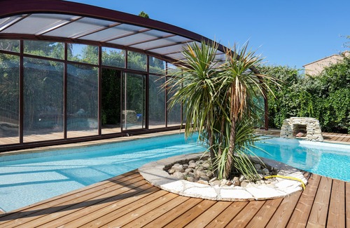 - a swimming pool with an opening roof for winter and summer enjoyment,