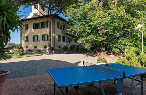 Villa Beltrami está rodeada por un hermoso parque, realzado por grandes áreas de césped bordeadas por setos para proteger su privacidad, todo rodeado de vastas extensiones de aceitunas y viñedos que enmarcarán sus vacaciones inolvidables. En el gran jardín a la sombra de pinos y cedros centenarios del Líbano, te encontrarás con una explosión de coloridas flores, limones típicos de la zona y un rincón dedicado a las hierbas que puedes usar para crear los platos típicos de la cocina toscana. . Dentro del parque hay numerosas áreas sombreadas donde puedes relajarte. En la hermosa terraza panorámica hay una gran mesa donde se pueden tomar comidas al aire libre, mientras que el área entre la casa y la piscina cuenta con sofás y sillones a la sombra de un cenador.