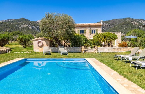 Casa de Almendras es una tranquila villa de campo con piscina privada y espectaculares vistas a la montaña en Caimari.