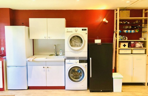 La casa consta de 4 apartamentos para 4 personas, cada uno con 1 cocina, una sala de estar, 1 baño y 4 camas (1 cama doble en el dormitorio y una cama doble o dos camas individuales en la sala de estar). La casa también cuenta con amplias salas de estar comunes a todos (1 cocina, 2 salas de estar, comedor, lavandería, sala de esquí). La casa es ideal para 8 adultos y 8 niños.