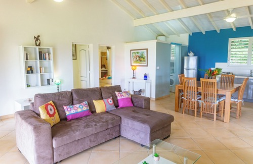 La villa Cyann se encuentra en las primeras alturas de la playa Grande Anse en Deshaies, donde podrá disfrutar de los encantos de la costa de sotavento. La villa con 2 dormitorios es ideal para 4 personas a 500 metros de la playa a pie. Desde la terraza podrá disfrutar de la vista del mar Caribe.
