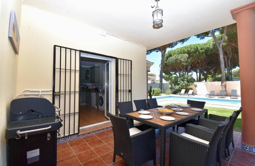 Villa con piscina privada en Chiclana de la Frontera, Andalucía, España para 10 personas. La casa está situada en una zona de playa y residencial, a 3 km de la playa de La Barrosa, a 10 km de Chiclana y a 1 km de Sancti Petri. La villa tiene 4 dormitorios y 3 cuartos de baño, distribuidos en 2 plantas. La cercanía de la playa, sitios para salir, actividades deportivas, zonas de entretenimiento, lugares para ir de compras, lugares de interés y cultura hace de esta villa un alojamiento apropiado para pasar sus vacaciones en España con familia o amigos.