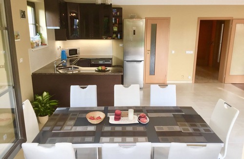 La casa con jardín grande es solo para ti. Hay si chimenea de barbacoa, cuando se puede preparar una gran comida con olor increíble a madera. Tenemos una bioespecia en el jardín. Aparcamiento directamente en la villa para tres autos con portón eléctrico. Sistema de cámara de seguridad y alarma. Disponible todo el equipo de cocina y electrodomésticos: lavaplatos, cocinas eléctricas, horno, microondas, hervidor, tostadora, cafetera.