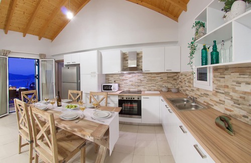 Big Blue Villa es una propiedad nueva situada en el pintoresco pueblo de Katsarata. La ubicación es privada y aislada, pero a poca distancia en coche de Fiskardo. La villa goza de una posición privilegiada cuesta arriba con amplias e impresionantes vistas al mar sobre el mar Jónico, Ithaca y Lefkada. La villa cubre 130 m2 y se basa en dos niveles. El nivel principal consta de una sala de estar / cocina de planta abierta, dos dormitorios y 2 baños (uno en suite), todos los cuales tienen acceso directo a la gran terraza (190m2) y la piscina. El tercer dormitorio (principal) está en el segundo piso. Cuenta con baño privado y balcón privado con vistas ininterrumpidas al mar Jónico.