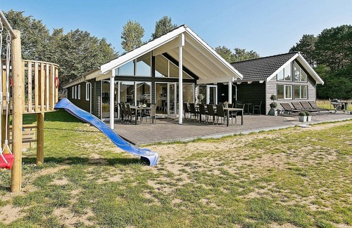 Layout: cocina abierta(fogón(eléctrico), campana extractora, cafetera, microondas, lavavajillas, nevera, congelador(> 250L), secadora, lavadora), salón-dormitorio(TV(cable, canales de televisión alemanes, canales de TV daneses), reproductor de DVD, reproductor de CD, instalación estéreo, trona), dormitorio(cama doble, cama infantil), dormitorio(cama doble), dormitorio(2x cama individual), dormitorio(2x cama individual), dormitorio(2x cama individual), dormitorio(2x cama individual), dormitorio(2x cama individual), cuarto de baño(calefacción de suelo)(bañera o ducha, lavabo, váter), cuarto de baño(calefacción de suelo)(bañera o ducha, lavabo, váter), cuarto de baño(calefacción de suelo)(bañera o ducha, lavabo, váter), espacio vacío(4x cama individual plegable), videoconsola, Bañera de burbujas(dentro de la casa, climatizada, 6 personas), sauna(dentro de la casa, climatizada, 6 personas), terraza, jardín, barbacoa, piscina(dentro de la casa), juegos infantíl, mesa de ping-pong, futbolín, dardos, billar, calor geotérmico, bomba de calor aire-agua