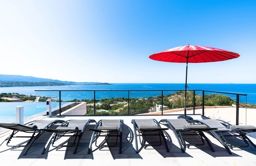 Esta prestigiosa propiedad en Porticcio (sur de Córcega) tiene cuatro dormitorios + suite principal + piscina + vista panorámica de 270 m2.