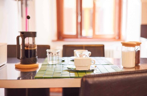 El apartamento consta de dos dormitorios dobles, alquilados juntos decoradas con elementos de diseño y de alta calidad. TV, zona wi fi, ipad son sólo algunos de nuestros servicios. En las dos habitaciones encontrará todo lo necesario para su estancia, y ropa de cama para las toallas. Hay dos baños completamente independientes con una gran ducha y secador de pelo. Salón con estufa de leña, cocina equipada y plaza privada al aire libre son los elementos principales que caracterizan este apartamento. El desayuno se sirve bajo petición.