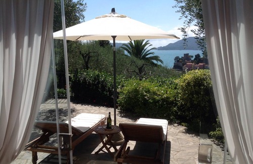 La piscina ovalada de 5x10 es para uso EXCLUSIVO de los huéspedes, aquí encontrarán sombrillas, tumbonas y tumbonas donde podrán relajarse y admirar el Golfo de los Poetas, que cada noche satisfará la vista con encantadoras puestas de sol sobre San Terenzo, un pequeño pueblo de pescadores con su magnífico castillo y en la distancia, Portovenere y las islas.