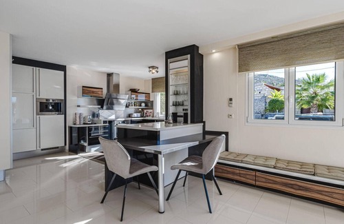 Esta propiedad de absoluto lujo en una ubicación de ensueño le encantará desde el primer segundo. El interior moderno y luminoso de la villa ofrece un panorama realmente impresionante de toda la costa suroeste de Tenerife y La Gomera desde casi todas las habitaciones. Aquí tienes la mejor oportunidad de ver una puesta de sol indescriptible cada noche. Suelos de mármol pulido y luminoso, una cocina abierta de última generación equipada con todas las comodidades, una chimenea, Wi-Fi y TV vía satélite, un sistema de sonido Sonos en el interior y el exterior, amplias terrazas panorámicas y tres espaciosos dormitorios con dos baños, uno de ellos con jacuzzi, no dejan nada que desear. Una magnífica piscina climatizada, un jacuzzi, una mesa de ping pong, una sala de fitness y un enorme jardín en terrazas con todo tipo de plantas tropicales, en el que se integra armoniosamente una pista de petanca de competición, completan esta oferta única.
