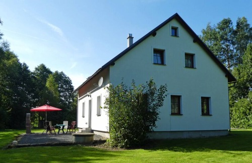Villa Elly se encuentra en un pintoresco pueblo, a unos 20 km al oeste de Liberec, a los pies de la montaña Jested (1201 m). Gracias a su ubicación estratégica, en el borde de las montañas Jizera y cerca del triángulo fronterizo con Polonia y Alemania, realmente puede pasar unas vacaciones variadas. El hermoso clima en el verano es perfecto para nadar, practicar deportes acuáticos, caminar, andar en bicicleta o jugar al golf, pero también en la primavera y al final del verano el área tiene mucho que ofrecer. Descubra la cultura local, bellas vistas, pueblos románticos, castillos e iglesias. Hay algo para todos. Si el clima no es tan bueno, puede visitar el parque de atracciones Center Babylon en Liberec con interminables juegos de diversión acuática, sauna e instalaciones de bienestar, bolera, cine y mucho más. El invierno de cuento de hadas ofrece muchas oportunidades para esquiar, esquiar a campo traviesa, practicar senderismo de invierno o hacer snowboard. La villa se encuentra entre muchas estaciones de esquí. La estación de esquí más cercana y también la más grande de la región es la estación de esquí Jested, que está a menos de 15 km. Este complejo completamente renovado con más de 10 km de pistas, que varía de azul a negro, 9 ascensores a una altitud de 540 a 1000 my está seguro de nieve gracias a las máquinas de nieve artificial. Su día de deportes de invierno se puede finalizar en uno de los restaurantes donde podrá disfrutar de deliciosas comidas a precios razonables.