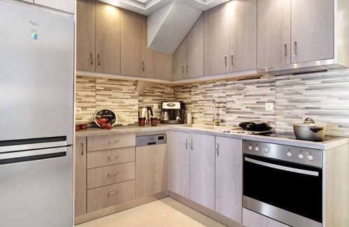 El establecimiento se encuentra a 500 metros de restaurantes, minimercados, una panadería, una farmacia y una parada de barcos. Las playas cercanas incluyen Skala Gialou y Tsoukalades (ambas a 1,6 km de la villa), así como Pefkoulia, Agios Ioannis y Kaminia Beach (todas a 2,1 km). Los enlaces de transporte público se encuentran a poca distancia.