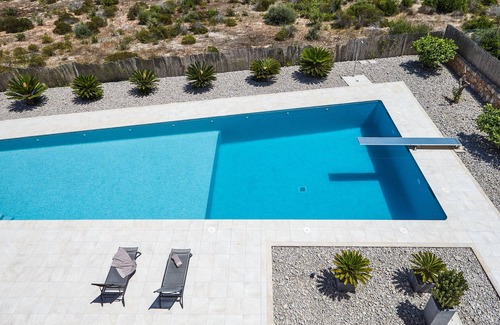 Private and quiet Villa at end of dead end road, lots of privacy, huge pool (23 m long and 4-8 m wide with jumping board), 6 double rooms with bathroom en suite, huge living room with fire place, dining room and open, fully equipped kitchen. Perfect view to a natural area, Es Trenc beach is at walking distance (500 m) as well as different restaurants and daily life shops (supermarket, pharmacy, bakery). Perfect place to relax, sport and stay!