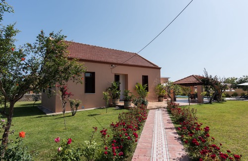 La espaciosa villa tradicional de 160 m2 es una casa de piedra de 3,5 m de altura que puede alojar cómodamente a un grupo de hasta 6 personas. Se encuentra en el pueblo de Gerani, a solo 180 metros de la playa ya 12 km de Chania. Cuenta con un jardín privado exuberante con árboles, plantas, flores y una piscina privada. La villa cuenta con 3 amplias habitaciones, 3 baños, una gran sala de estar, comedor y cocina, todas con aire acondicionado. Un televisor de pantalla plana y conexión Wi-Fi ilimitada también se proporcionan.