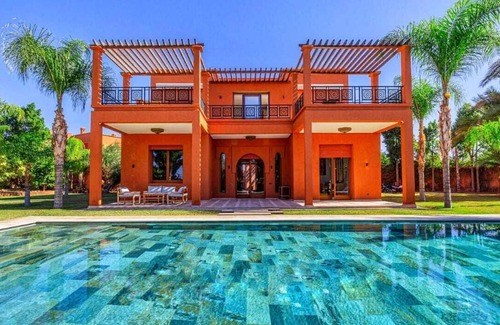 Esta villa de 3 dormitorios y 3 baños se encuentra en Oulad Hassoune y es una ubicación fantástica desde la que recorrer los alrededores. A los amantes de la naturaleza y el aire libre les encantará estar a 20min en coche de Plaza des Ferblantiers y a 40min de Valle de Ourika. Puedes conducir 21min hasta Plaza de Yamaa el Fna o 19min hasta Jardín Majorelle.