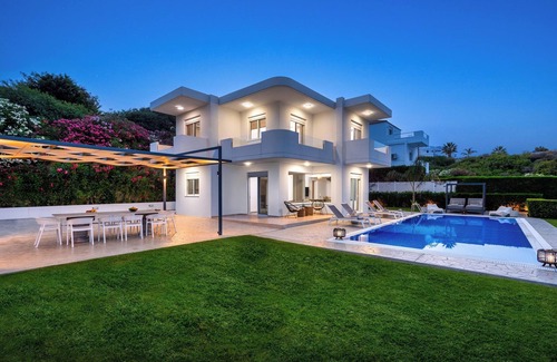 Esta es una nueva Villa ubicada en una ladera y tiene capacidad para 10 personas, con vista al mar. Ubicado en la zona de Kolympia, a solo 1 km del mar, ofrece unidades totalmente equipadas y decoradas con buen gusto, con piscina privada.