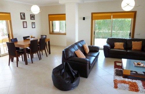 Una nueva villa familiar ubicada en Sesmarias, a solo 500 metros de algunos restaurantes locales y mini mercados, que ofrece un buen espacio al aire libre, una gran área de piscina, rodeada de césped, ubicada en un entorno tranquilo pero a solo unos minutos en coche de la playa más cercana en Castelo (2 km ) y los bares, la playa y los restaurantes de la localidad de Albufeira y Gale Beach.
