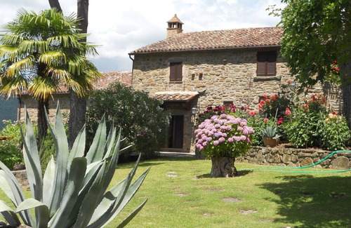 La villa era originalmente una granja con edificios para animales de granja y una torre para secar tabaco. Los tres niveles de la casa muestran estos diferentes orígenes. La renovación se llevó a cabo para preservar el estilo de la arquitectura toscana / umbra y el uso de piedra y ladrillos. El jardín ha sido diseñado por expertos en la ladera de la colina y es ideal para que jueguen los niños. El jardín está rodeado por varios acres de terrazas y bosques que pertenecen a la propiedad.