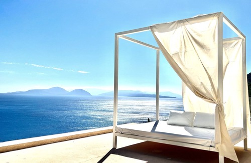La villa está situada entre olivos y por encima de la aldea de pescadores Vasiliki, también conocida por sus perfectas condiciones de windsurf. El agua profunda es también ideal para los niños.