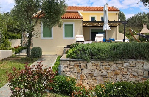 En una hermosa ladera llena de olivos, pinos y flores, con vistas al mar Egeo, le damos la bienvenida a nuestra nueva villa hermosa Mirothea en la isla de Alonissos (2011 construcción).