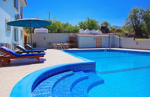 Esta villa independiente muy privada con impresionantes vistas a la puesta de sol y impresionantes terrazas con vistas a la bahía de Agia Marina, puede alojar a una familia o grupo de hasta nueve (9) personas en cuatro habitaciones grandes. Con una enorme piscina (7 X 14 m) como centro de atracción (se puede calentar a pedido) Villa Marilena Sunset Dio podría ser el alquiler de vacaciones ideal en el área de Polis en Chipre.