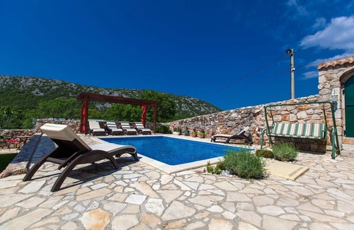 Villa mediterránea de piedra con sauna, piscina privada, 8 aparatos de aire acondicionado, barbacoa - admite perros | Casa en Bribir