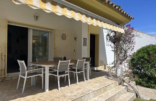 Villa maravillosa con jardín y piscina privada Villa Migusto con piscina privada está ubicada en una calle tranquila de la elegante urbanización Residencial Roche, a unos 10 minutos andando de la playa. El amplio salón-comedor con cocina americana forma el corazón de la casa. Detrás de la cocina hay una veranda cubierta donde entra el sol de la mañana. El dormitorio principal con cama doble y baño en suite está decorado de muy buen gusto y tiene vistas al jardín. El segundo dormitorio también está en la planta baja y tiene un baño con ducha en suite. La primera planta consta de un pequeño estudio con cama doble, una cocina y un baño con bañera. Todos los dormitorios así como el salón tienen calefacción central, por lo que la villa Migusto está perfectamente equipada para pasar unas vacaciones en invierno. el acceso al internet es posible de todas las habitaciones (wifi). El salón accede a una terraza amueblada con vistas a la piscina (8 x 4) y al hermoso jardín con tumbonas para relajar y tomar el sol. Gracias a su distribución, la casa el un lugar idóneo por ejemplo para tres parejas o una familia con niñera, etc.