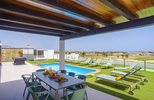 Relájate en la piscina privada o tómate algo en el jardín de esta villa de 1 m². Además, cuenta con una parrilla. En cuanto al interior, puedes poner a prueba tus habilidades jugando al billar, o disfrutar del wifi y de la televisión.
