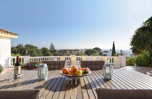 El chalet está situado en una zona tranquila en la parte alta de la urbanización Torreblanca en Fuengirola. Debido a su ubicación más elevada, podrá disfrutar de la tranquilidad y de las impresionantes vistas sobre el Mediterráneo, la ciudad de Fuengirola y el puerto. La playa, la estación de tren de Torreblanca, los supermercados, los bares y los restaurantes están a 5 minutos en coche. El chalet está a sólo 20 minutos en coche del aeropuerto de Málaga y a 25 minutos de Marbella. Para los amantes del golf, hay varios campos de golf excelentes a poca distancia en coche.