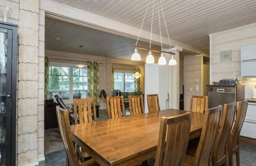 Permitido máximo 2 mascotas / perros. 50 km al noreste de Heinola, lago Peruves/Lihavanlahti a 40 m (12 km largo, 2 km ancho), duro fondo lijado, gradualmente profundizando, muelle y bote de remos. Cabina de troncos de 2010, cocina, salón, dormitorio (11 m²) con dos camas, lavadero, baño (2 duchas) sauna, estufa eléctrica de sauna, WC separado, terraza. En la planta superior, vestíbulo, dormitorio (17 m²) con dos camas, baño privado con WC y ducha, dormitorio (14 m²) con dos camas, dormitorio (24 m²) con cama extensible para dos personas y tres colchones, balcón, baño (WC y ducha). Sauna independiente a orillas del lago de 30 m² con estufa a leña en la sauna, baño con 2 duchas, cuarto de chimenea, salón acristalado de 15 m² con la cocina exterior entre estos espacios. En todos los dormitorios hay roperos espaciosos, aire acondicionado mecánico en la planta superior. Conexión de fibra óptica de 100 MB, WI-Fi. Puede traer hasta 2 mascotas sin cargo adicional. Si piensa traer más mascotas, le pedimos hablarlo con el propietario. Cochera. Se puede alquilar el jacuzzi. Villa Puronotko es una villa en alquiler de alto nivel para unas vacaciones de calidad. Hay mucho espacio para muchos tipos de actividades vacacionales en una parcela grande. Pertunmaa a 4 km, mantenidos senderos de esquí en Pertunmaa (10 km largos). Kuortti a 14 km, Mäntyharju a 26 km (entre otras cosas, el Centro de Arte Salmela), Heinola a 50 km, Mikkeli a 53 km, parque nacional Repovesi a 73 km, Lappeenranta a 124 km, Helsinki a 186 km.