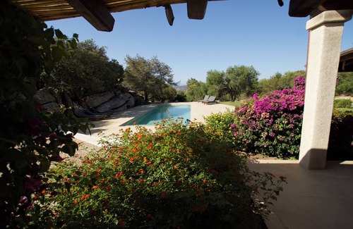 La casa está rodeada de hermosos arbustos mediterráneos, como enebros, olivos, mirtos, madroños, jardines de campos y las fantásticas rocas de granito esculpidas por el viento.