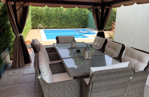 Villa situada en una zona residencial muy tranquila rodeada de vegetación y los famosos viñedos Prosecco y vinos tintos de la campiña del Véneto. Muy cerca de Venecia (50 minutos en coche) y centros turísticos costeros como Jesolo y Caorle (40 minutos en coche), Outlet Noventa di Piave para compras de moda (20 minutos en coche), Treviso (35 minutos en coche), Pordenone ( 30 minutos en coche), Aviano (30 minutos en coche), el lago Santa Croce para actividades deportivas en el lago y el lago Barcis (ambos a 30/40 minutos en coche). Desde los espléndidos Dolomitas, se tarda unos 90 minutos en coche para llegar a Cortina. Valdobbiadene y Conegliano, siempre el corazón y el hogar de Prosecco y recientemente declarado PATRIMONIO DE LA UNESCO, están a solo 30/40 minutos en coche. La casa está terminada con materiales de alta calidad y equipada con todas las comodidades. Calefacción por suelo radiante, aire acondicionado, gas e inducción para cocinar, televisión de 55 pulgadas, mega adsl con wifi, lavadora, refrigerador americano, congelador externo adicional más accesorios completos para cocinar y comer. Fuera de la casa hay 350 metros cuadrados de jardín vallado con seto y una piscina de 35 metros cuadrados como se muestra en las fotos. La villa consta de un espacio abierto con cocina, sala de estar y bodega de teka de vidrio con control de temperatura, un baño de 8 m² y un comedor de 16 m² con capacidad para 12 personas y acceso al jardín delantero.