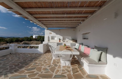 Esta villa de 4 dormitorios y 3 baños se encuentra en Naxos y es una ubicación fantástica desde la que recorrer los alrededores. A los amantes de la naturaleza y el aire libre les encantará estar a 5 minutos a pie de Naxos y Cícladas Menores y a 4min en coche de Playa Kastraki. El alojamiento dispone de aparcamiento en las instalaciones. Además, estarás a 6min en coche de Playa Pyrgaki y a 2min en coche de Glyfada Beach.