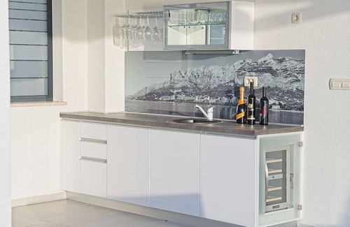 La nueva Villa de lujo Ulika con piscina, hidromasaje y terrazas con vistas panorámicas al mar se encuentra en la parte oeste de Makarska. En la planta baja hay una sala de estar, cocina, piscina y amplia terraza. En primera planta tiene tres habitaciones con baño y balcón. Además, la villa tiene una gran terraza en la azotea con bañera de hidromasaje, zona de estar y bar en el segundo piso, donde se puede disfrutar de una vista panorámica impresionante y una increíble puesta de sol. La casa está ubicada en una colina en un entorno muy tranquilo. Le ofrecemos una bicicleta con la que puede llegar al centro de la ciudad o la playa principal durante unos minutos. Makarska ofrece mucha diversión tanto para adultos como para niños. ¡Bienvenido!