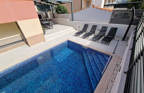 En esta villa para familias podrás disfrutar de la vela, del submarinismo y de mucho más a muy poca distancia. El alojamiento dispone de un aparcamiento en las instalaciones, de modo que puedes dejar tu vehículo u optar por la opción más rápida. Estarás a 15min a pie de Iglesia de San Carlos Borromeo y a 5min en coche de Playa Okrug Gornji.