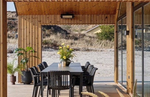 This luxurious holiday home near Henne Strand is a perfect retreat for families or groups of friends seeking comfort, fun, and relaxation in beautiful surroundings. Just five minutes from the charming town, it combines easy access to nature, shops, and cafés with world-class amenities.\r\nThe house features six bedrooms in two separate sections, one cozy loft for kids, and a charming alcove. Three bathrooms, including one in the pool area, ensure convenience. At its heart is a spacious XL kitchen and living area, equipped with two ovens, two dishwashers, and ample fridge space, making meal prep enjoyable for everyone.Entertainment options abound with an activity room offering darts, billiards, and table tennis, plus a lounge with a TV. The highlight is the pool area with a counter-current system, a spa-equipped shallow end, and outdoor luxuries like a whirlpool. A wooden terrace, outdoor kitchen, and play area complete this unforgettable vacation spot!\r\n\r\n\r\n\r\n\r\n