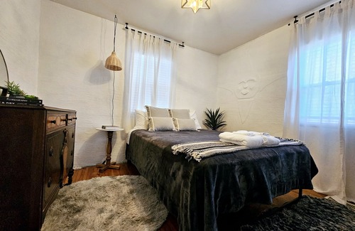 Este alojamiento de 2 dormitorios y 1 baño cuenta con una sala de estar, aire acondicionado y escritorio. Conéctate al wifi, o relájate frente a un Smart TV. El cuarto de baño incluye un secador de pelo y toallas. Prepara una comida casera en la cocina, equipada con horno, placa de cocina y frigorífico, además de cafetera y tetera, máquina de hielo y microondas. Otras comodidades incluyen ropa de cama, una tabla de planchar y calefacción.