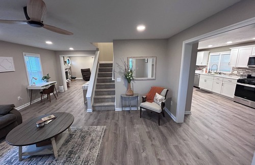 Este alojamiento de 4 dormitorios y 2.5 baños cuenta con una zona para barbacoas, chimenea, aire acondicionado y escritorio. El cuarto de baño incluye un secador de pelo, toallas y papel higiénico. La cocina está equipada con horno, placa de cocina y frigorífico, además de cafetera y tetera, hervidor eléctrico y microondas. Y no tendrás que llevarte ropa de más, porque podrás aprovechar la lavadora y la secadora.