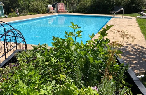 Nuestra casa tiene una gran piscina en el suelo (20x40), adyacente a un patio que se extiende a lo largo de la casa. Esta ubicación es única ya que el frente de la propiedad tiene vista a la montaña, mientras que el patio trasero se dirige hacia una pradera que está cubierta de árboles nativos de Colorado. Te despertarás con el sonido de pájaros cantando, y ocasionalmente se escuchará un búho ululante. En ocasiones, también es posible echar un vistazo a un oso negro, y los ciervos frecuentan esta área, ... y los conejos están en todas partes. También es un barrio muy tranquilo, por lo que el yoga matutino en el patio y las cenas nocturnas en la sala de cine hacen de esta propiedad el lugar perfecto para relajarse y descansar.
