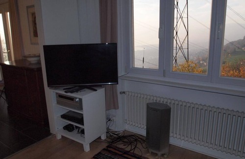 La villa "Gais Alpins" se encuentra en una posición sin obstáculos en Glion (Montreux) con vistas despejadas del lago Léman, los Alpes de Saboya, frente al suroeste (Ginebra). La vista se extiende en tiempo despejado hasta Nyon en los viñedos de Lavaux (Patrimonio Mundial) hasta el sur del Jura. Superficie habitable 150 m2, sin terrazas exteriores, 1 habitación, 2 camas individuales, salón con diván convertible (cama doble) y, comedor, sala de estar, dos zonas húmedas con WC, bodega y espacio de trabajo (lavado / calefacción / artesanía).