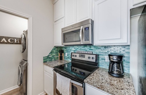 INTERIOR Esta nueva casa adosada de 4 dormitorios / 3 baños expresa una elegancia costera informal digna de una revista y puede albergar a un grupo de 12 personas cómodamente. El aspecto y la sensación de la casa adosada se inspiró en las mejores casas de playa de la costa en todo el país. La casa está a unos pasos de la playa y tiene una gran vista al mar sin obstáculos desde su balcón privado, único para casas de 4 dormitorios en el complejo Padre Beach View. También cuenta con un patio privado de 1,000 pies cuadrados completo con una ducha al aire libre para su comodidad después de regresar de un día en la playa o en la piscina. El patio es un lugar perfecto para comer o simplemente pasar el rato con amigos y familiares. Está amueblado con dos grandes mesas de picnic con capacidad para 14 personas. El salón adicional es perfecto para relajarse bajo el sol o para disfrutar de un cóctel por la noche. La sala de estar de la planta baja presenta un diseño de concepto abierto con revestimiento de regadera que es el lugar perfecto para entretenerse o relajarse con familiares y amigos. La gran sección (con cama extraíble) será un punto focal para ver el HDTV inteligente de pantalla plana de 65 pulgadas y su DVD favorito o jugar a sus juegos de mesa favoritos. La cocina cuenta con asientos para bar para 3 personas, gabinetes a medida, encimeras de granito, protector contra salpicaduras de diseñador hermoso y electrodomésticos de acero inoxidable. Junto con el comedor adjunto, es el lugar perfecto para reuniones íntimas. El dormitorio principal de la planta baja cuenta con una elegante cama king size costera, un vestidor y un amplio baño en-suite. Podrá disfrutar de una gran noche de sueño y tener mucha privacidad. Arriba, cuenta con tres dormitorios y un desván. El espacioso maestro de arriba viene con una cama king, baño privado y balcón privado para disfrutar de los hermosos amaneceres y puestas de sol sobre la vista del océano! Las otras dos habitaciones de arriba incluyen una cama queen y una cama completa, perfectas para parejas o niños. Estas habitaciones están bellamente decoradas con paredes de regazo y decoración costera. El loft tiene un sofá grande (con cama extra��ble) e incluye un HDTV de pantalla plana de 60 'completo con un sistema de juegos PS3. Todas las habitaciones en toda la casa tienen grandes televisores de pantalla plana de alta definición y toda la unidad cuenta con acceso a Wi-Fi y televisión por cable. COMPLEJO / COMUNIDAD Con su estancia, puede disfrutar de la piscina de agua salada en el complejo que se calienta durante todo el año. Hay un tobogán para que los niños disfruten, así como parrillas bar-b-q, sillones y mesas de picnic cubiertas. Todo el complejo cuenta con exuberantes paisajes tropicales y esquemas de color costero. Nuestra fantástica ubicación le permite disfrutar de la playa, la piscina y la zona de juegos de la Isla del Padre Norte, o tomar un paseo de 5 minutos hasta el nuevo parque acuático Schlitterbaun. Todo lo que necesita para una escapada completa de playa y parque acuático. Si le gusta jugar al golf o simplemente relajarse en uno de los fabulosos spas de la zona, ¡encontrará que esta área es uno de los mejores lugares de vacaciones disponibles! Aunque nuestra casa está preparada para satisfacer todas sus necesidades culinarias, hay muchos restaurantes excelentes en la isla que le ofrecen todas sus especialidades favoritas. Cuando regrese, disfrutará de los dos espacios de estacionamiento