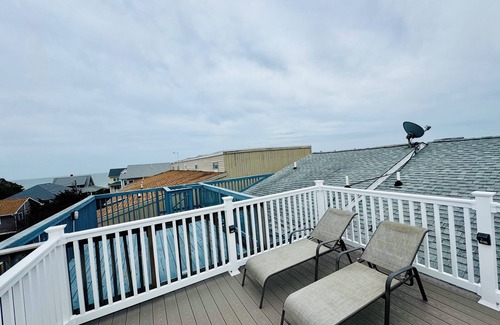 Bienvenido a Beach Living, a solo unos pasos de la playa. Nuestra casa es perfecta para varias familias, grupos de amigos o simplemente un fin de semana tranquilo. Hay tres niveles de espacio habitable. Con habitaciones en el primer y tercer piso, hay un amplio espacio y privacidad para todos. Hay 7 balcones y porches, incluido uno proyectado en el porche y una terraza en la azotea. Hay vistas al océano y la bahía desde el balcón del segundo piso, así como desde el dormitorio principal y el balcón, así como desde la terraza de la azotea. Podrías quedarte dormido escuchando las olas chocar.
