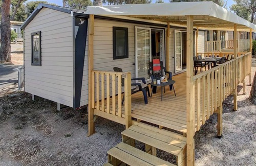 Located in Sainte-Catherine-de-Fierbois, this mobile home lets you experience it all. Fans of nature and the outdoors will love being 29 minutes by car from Cave of Goupillières and 50 minutes from Lac de Chemillé. If you'd like to explore the area, you can make the 24-minute drive to Domaine de Candé or the 23-minute drive to Zone Commerciale de la Vrillonnerie.