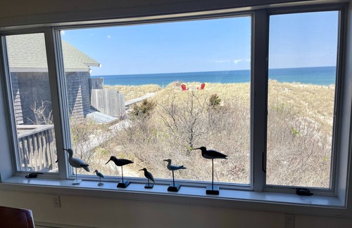 Mire la puesta de sol en el agua durante todo el verano desde su propio patio trasero y desde casi todas las habitaciones en esta casa totalmente remodelada y bellamente decorada. Esta hermosa casa de 4 dormitorios está situado directamente en Bahía de Cape Cod y tiene su propia magnífica playa privada y tiene vistas despejadas al agua todo el camino a los acantilados de Plymouth y en lo que los ojos pueden ver.