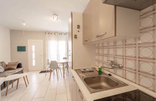 Esta casa de 31 m² tiene capacidad para 3 personas y se encuentra en una ubicación privilegiada, a pocos minutos de la playa. En la planta baja, encontrarás un salón-cocina totalmente equipada con todo lo necesario para preparar tus platos favoritos, incluyendo nevera, horno, microondas, vitrocerámica, hervidor de agua, cafetera y tostadora. El acogedor salón cuenta con una zona de comedor y Smart TV, y te da acceso a una terraza perfecta para disfrutar de un delicioso café.