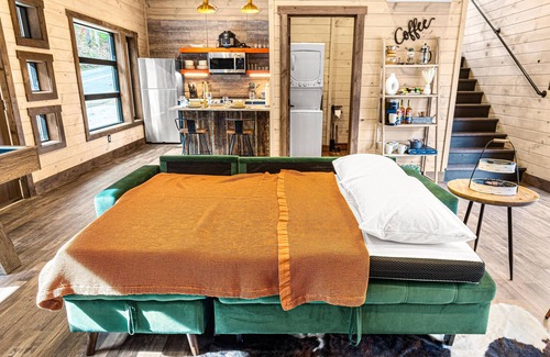 Este alojamiento de 1 dormitorio y 1.5 baños cuenta con una sala de estar, un sofá cama, una zona para barbacoas y chimenea. El cuarto de baño incluye un secador de pelo, toallas y papel higiénico. La cocina está equipada con horno, placa de cocina y frigorífico, además de cafetera y tetera, máquina de hielo y microondas. Podrás viajar con poco equipaje, porque tendrás una lavadora y una secadora a tu disposición.