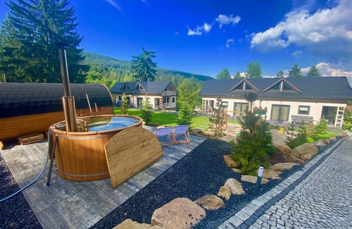 White Holiday Domki i Apartments Se encuentra en Szklarska Poreba. White Holiday Domki i Apartments ofrece alojamiento, con Chimenea/Calefacción, Desayuno, Barbacoa/Cocina al aire libre, Entre otras comodidades. Estas características Cabina Chimenea/Calefacción, Desayuno, Barbacoa/Cocina al aire libre, Para que su estadía sea cómoda.