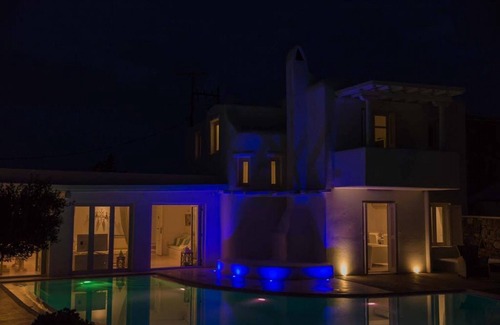 Esta villa de 5 dormitorios y 4 baños está ubicado en Míkonos, una ubicación ideal para explorar los alrededores. A los amantes de la naturaleza y el aire libre les encantará estar a 8min a pie de Playa Kalafatis y a 3min de Agía Ánna Kalafátis. El alojamiento dispone de aparcamiento en las instalaciones. Además, estarás a 9min en coche de Playa de Kalo Livadi y a 5min en coche de Monasterio de Panagia Tourliani.