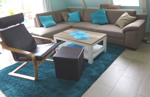 La planta baja cuenta con un pasillo con acceso al cuarto de baño, planta primera y en la sala de estar / comedor con cocina moderna adjunta. Un cómodo sofá y muebles de madera maciza hermosa hacen de nuestra casa un WohlfuhlHaus. El suelo de la planta baja es de baldosas. La cocina tiene una 'totalmente equipada', cosas como cafetera, lavavajillas, cocina, horno, congelador, máquina de pan, hervidor de agua, etc están presentes de forma natural.